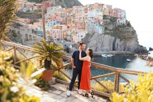 Marriage proposal in Manarola panoramic view poin
